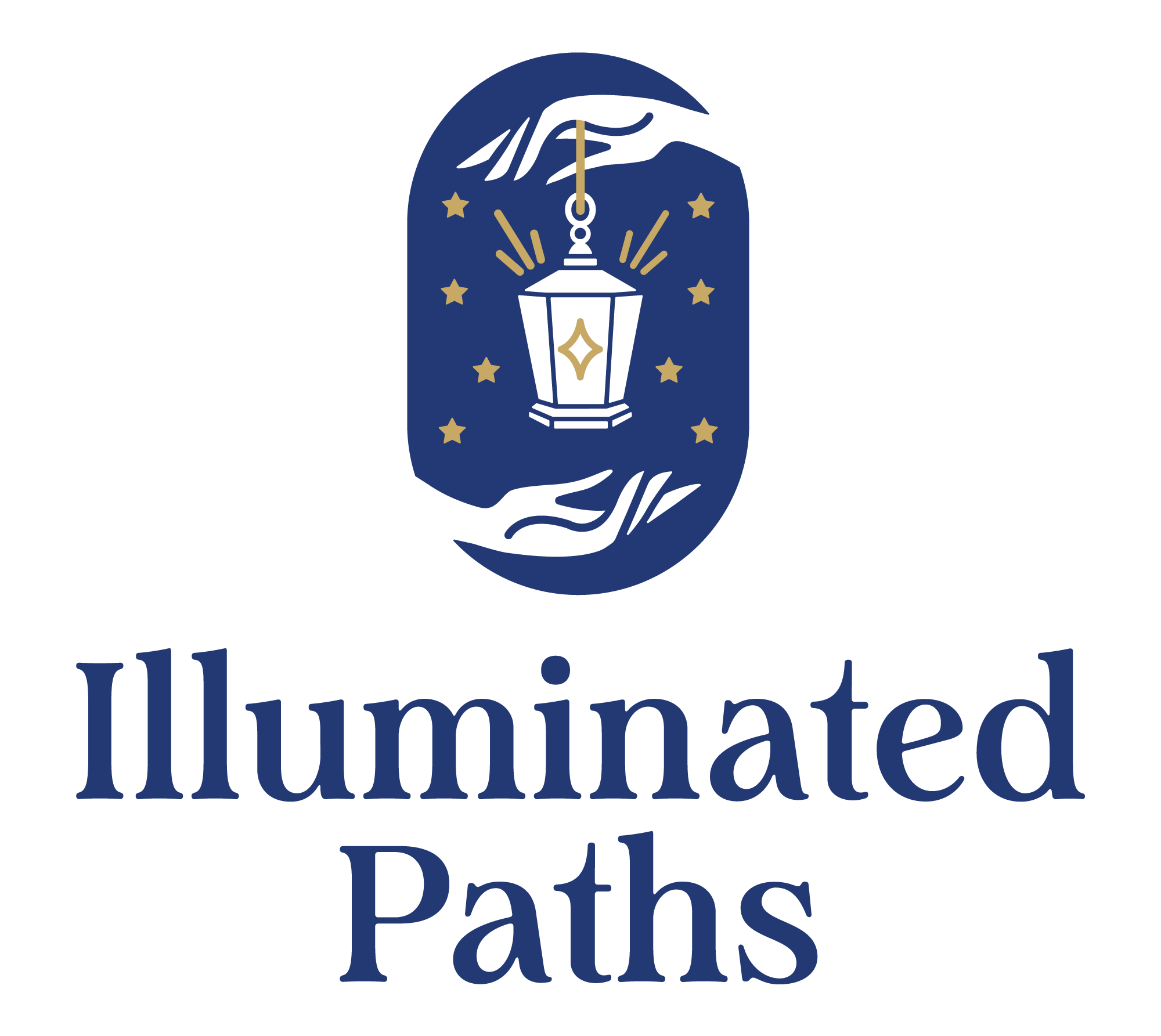 Illuminated Paths is a therapy and counseling brand that blends spirituality with guidance, symbolized through its tarot-inspired logo featuring a central lantern. This lantern represents the guiding light that clients seek on their journey toward self-discovery and healing. The branding incorporates playful yet thoughtful fonts and a serene, mystical aesthetic, creating a comforting and inspiring atmosphere. Illuminated Paths invites individuals to explore their inner selves with the promise of clarity and enlightenment, making every step toward personal growth feel supported and illuminated.